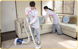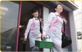 メリーメイドは2人1組で、ご家庭を訪問し、おそうじを代行するお仕事です。