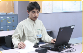 コンピューターにサービスの実績を入力。