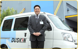 新規開拓営業やレンタル交換の時間配分を自分でやりくりするのも営業の大事な仕事。できるだけ多くのお客様にダスキンがお役に立てるよう、これからも地域密着型のダスキンの顔として、笑顔で頑張りたいと思います。